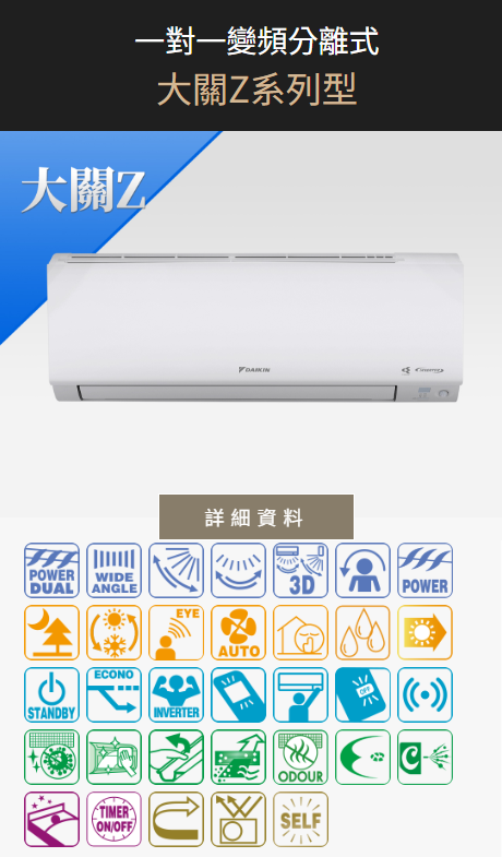 首頁 熱門產品 大金DAIKIN 大關Z系列型 大關Z系列型-FTXV28ZVLT/RXV28ZVLT 🔍 大關Z系列型-FTXV28ZVLT/RXV28ZVLT 冷房2.8 KW 暖房:2.8 KW 特點: 1.溫、濕度智慧雙控 2.超越一級能效 3.室內機防霉運轉 4.智慧型手機遠端遙控(選購件) 分類: 大金DAIKIN, 大關Z系列型, 熱門產品 標籤: 大關Z系列型 FTXV-Z, 大關Z系列型-FTXV28ZVLT/RXV28ZVLT 描述 相關商品 華菱HANL-29KIGSH(左吹)/HANR-29KIGSH(右吹) 熱門產品, 華菱HAWRIN, 窗型變頻冷暖系列 華菱DNE36KIGSH/DTC36KIGSH 熱門產品, 華菱HAWRIN, 易拆洗變頻壁掛系列 華菱HANL-36KIGSH(左吹)/HANR-36KIGSH(右吹) 熱門產品, 華菱HAWRIN, 窗型變頻冷暖系列 華菱BHI80KIGSH/BHO80KIGSH 熱門產品, 華菱HAWRIN, 精緻變頻壁掛系列